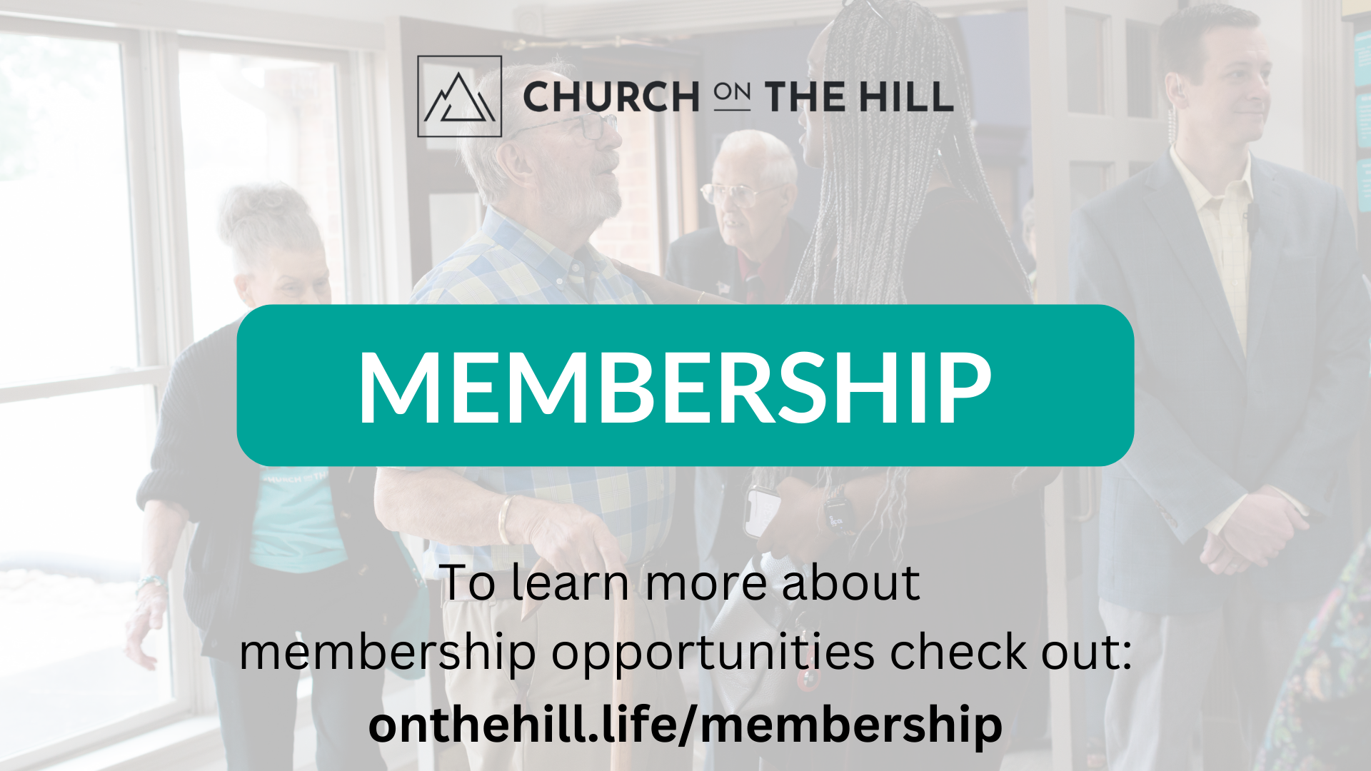 For those who call our church "home" we invite you to join the church through Membership. On Sunday, November 16th following the 10am service we will offer our next New Member Class, followed by Membership Sunday on November 23rd. To learn more and to register, head to www.onthehill.life/membership.