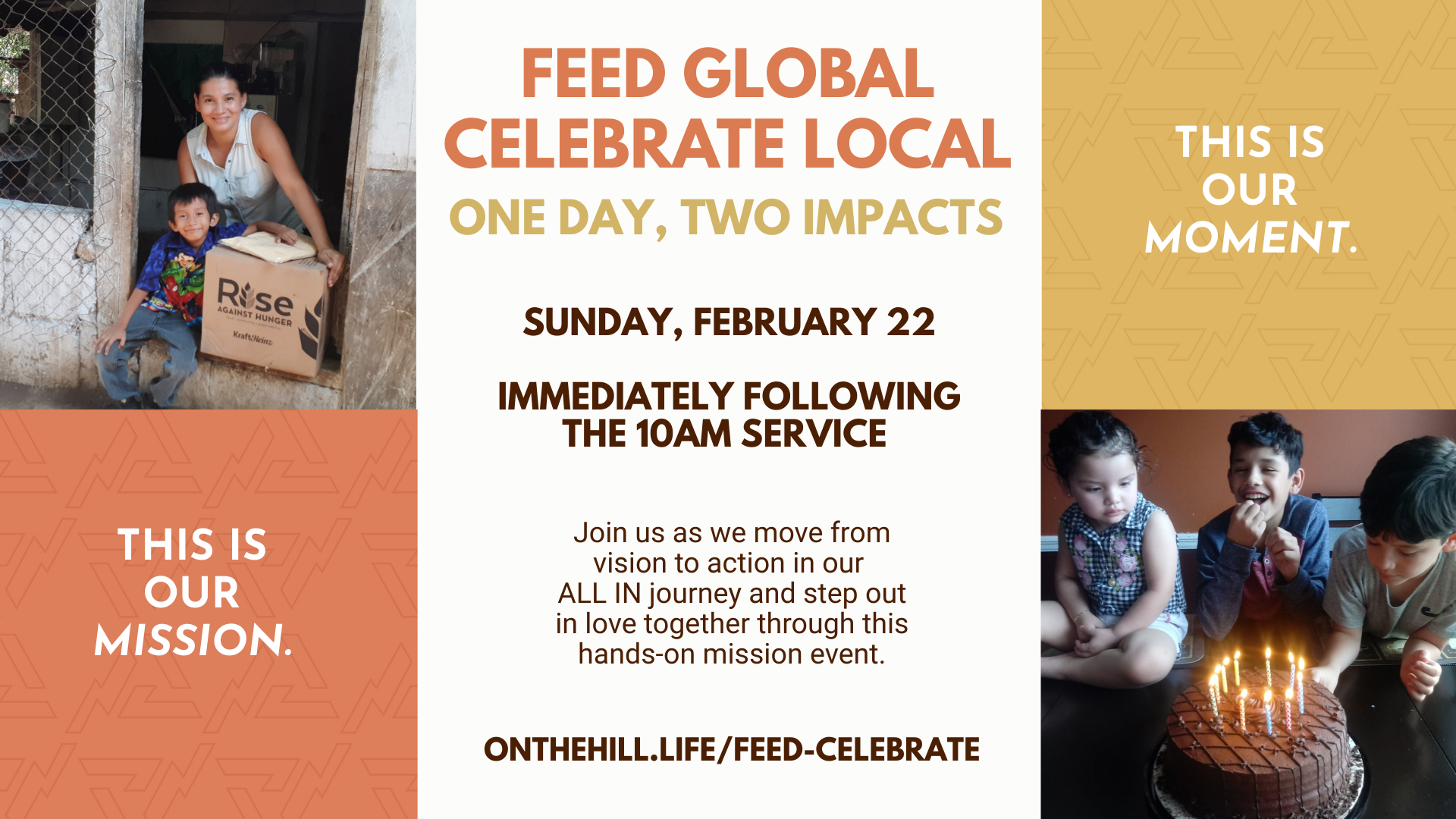 This is what being ALL IN looks like—offering our time, resources, and hearts so others near and far can experience the love of Christ. Learn more and register at: www.onthehill.life/feed-celebrate
